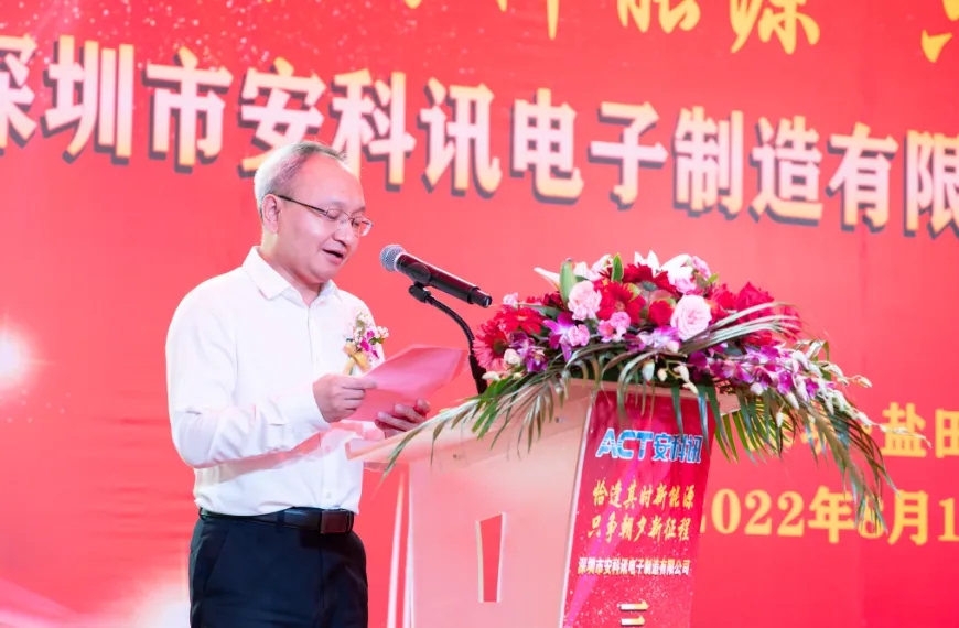 盐田区副区长周建军代表盐田区委区政府对安科讯三分厂的开业致以最热烈的祝贺。仪式中指出,近年来,在“产业兴盐”“创新驱动”战略的引领下,盐田迈入发展“黄金时期”。对于重点产业,相关扶持办法也在与时俱进、不断调整。从“重点产业”扶持,到“构建现代产业服务体系”,盐田在保持政策连续性、稳定性的基础上,学习借鉴各地创新举措,对原有惠企政策进行了融合提升。企业发展的进阶之路,清晰而坚定。安科讯的企业高速发展,也代表了智能制造科技创新企业在盐田能够拥有一片沃土, 未来的盐田经济发展动力十足,成果喜人,未来可期,衷心祝愿安科讯公司不断创新提升,继续发展,成为标杆。